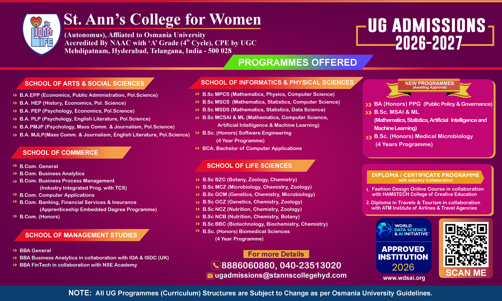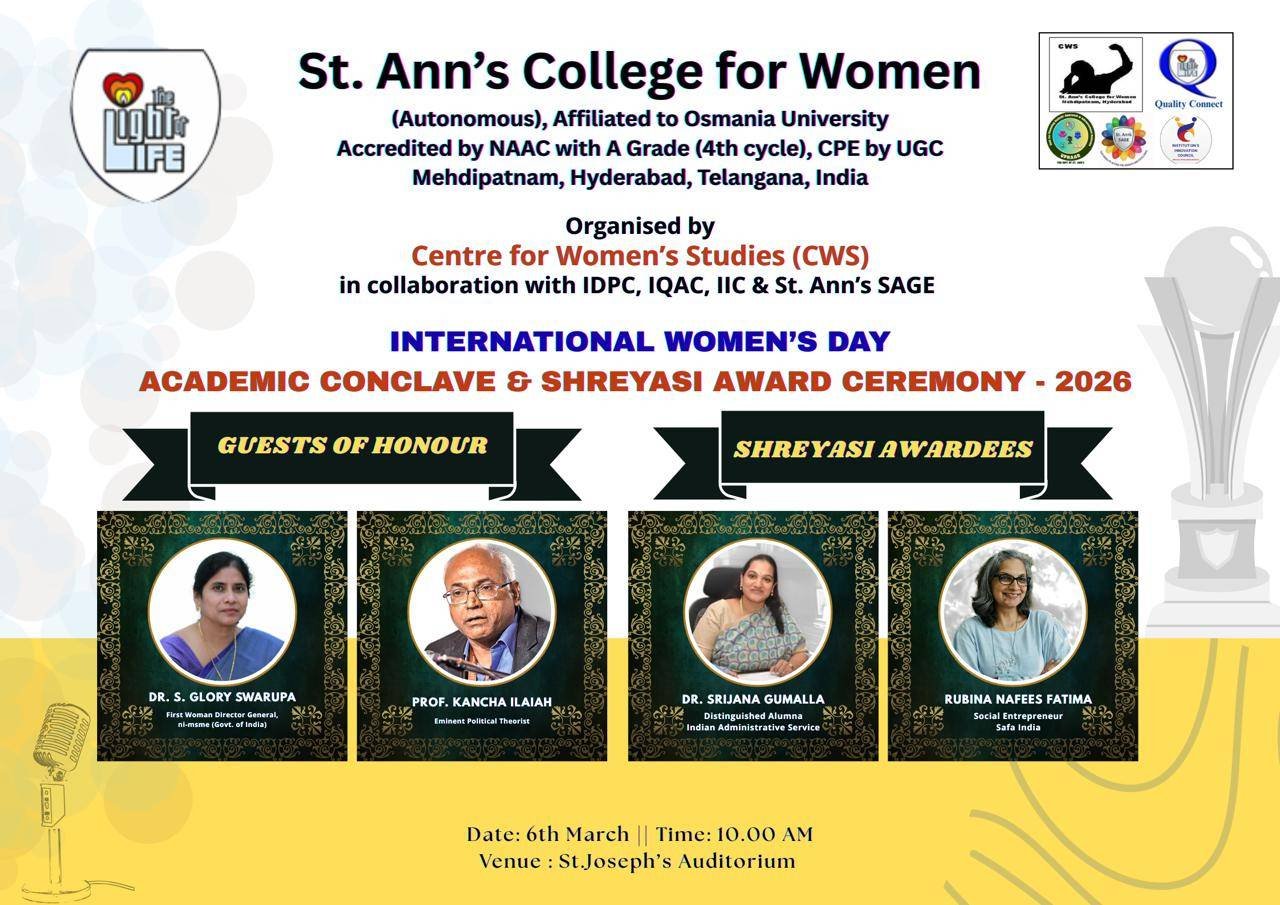 Years0Departments0Programmes0Faculty0Students0 +Alumnae0 +St.Ann's College
