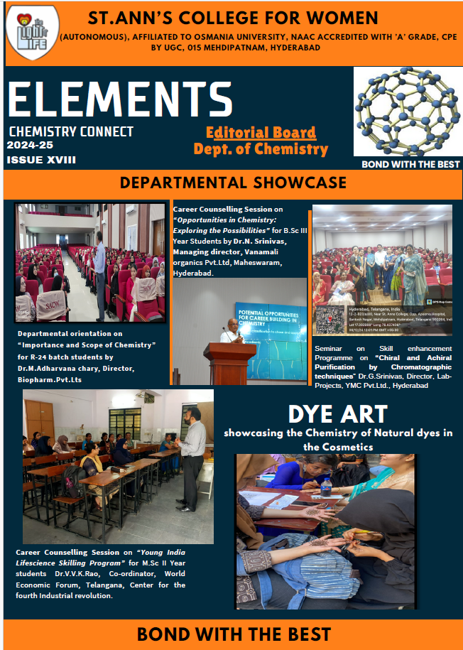 News letterHome » Departments » Chemistry » News letterDepartment of Chemistry News letter News letter Programmes offered Curriculum Program Outcomes Program Specific Outcomes / Course Outcomes Value Added Courses Department Faculty Profile Highlights and Achievements Activities Guest Lectures Conferences/Seminars Workshops/Training Programs Field visit Department Social Responsibility Student Projects /Internships Paper Presentation/Faculty News letter Media Collaboration MOUs Research Publications Projects Books authored Blogs Facebook